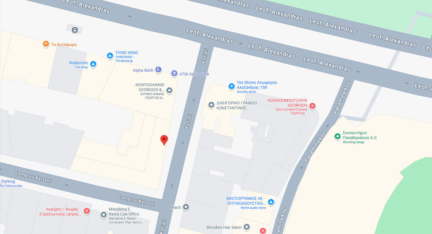 Διεύθυνση: Λεωφόρος Αλεξάνδρας 158α και Κόνιαρη 45 (είσοδος από Κόνιαρη) απέναντι από τον Άρειο Πάγο. Τρίτος όροφος. ΤΚ 11471